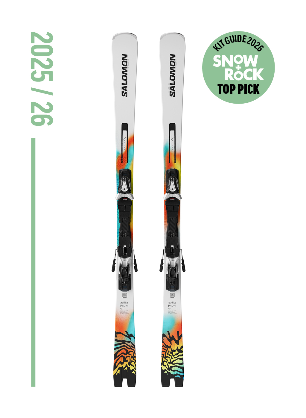 Built for those who canโt get enough carving, Salomonโs new Addikt Pro 76 setup will have you hooked from the first run. With its playful vibe and cutting-edge Motion Tail technology, plus a 76 mm waist that handles both short and long turns like a pro, you’ll be charging confidently no matter what the snowโs up to.